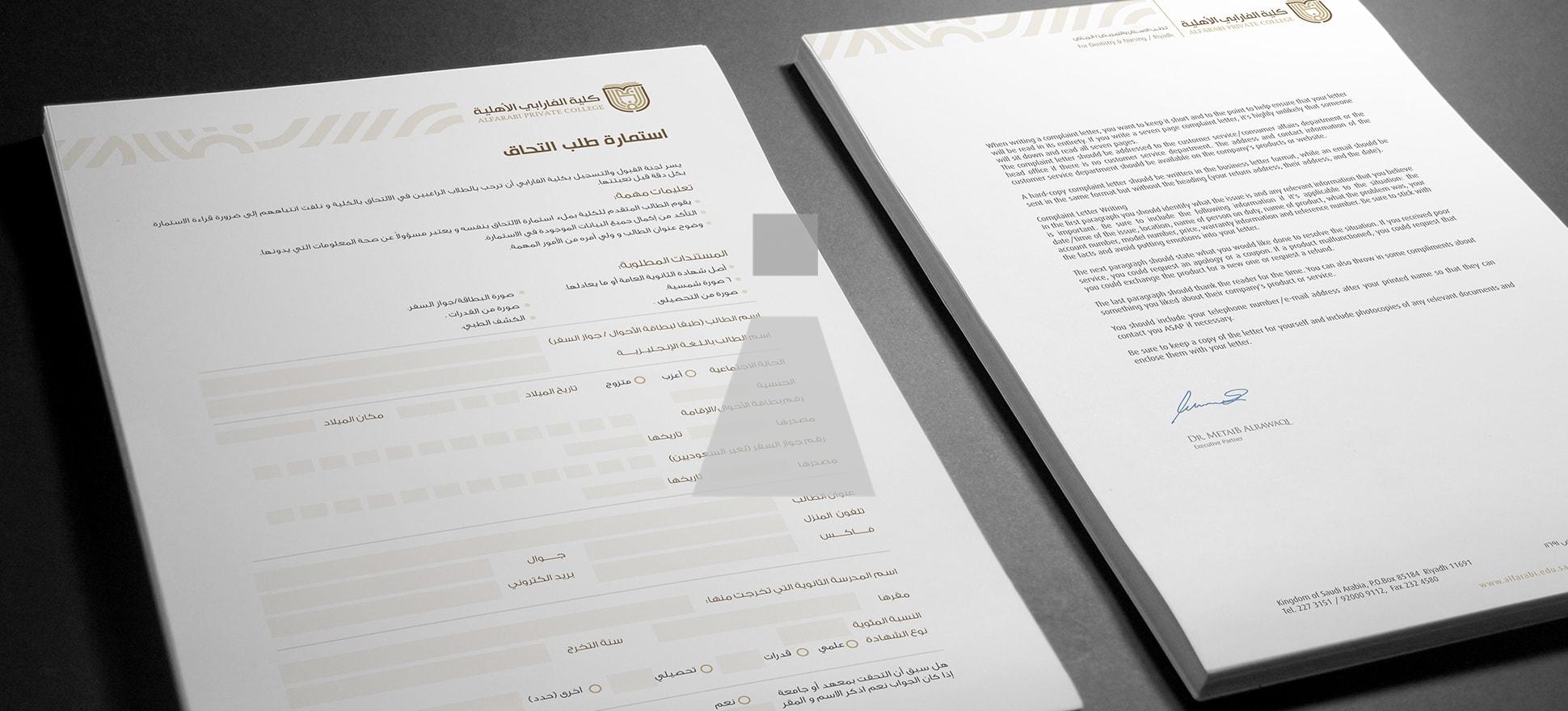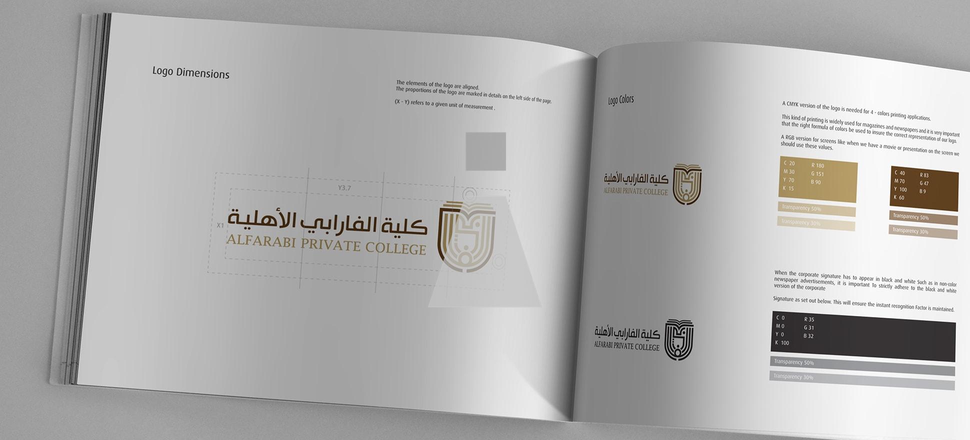 Moreover, the word Al Farabi College has been drawn inside in a distinctive and creative way to clarify the logo meaning.