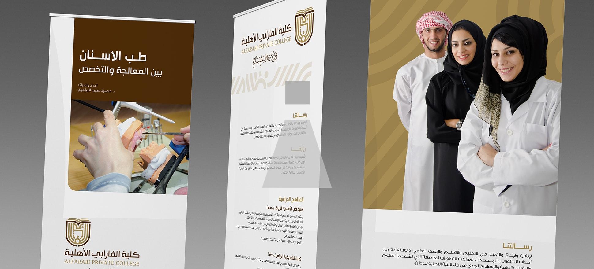 Al Farabi College has been developed and widened, and now it has more branches than before. Hence, it was necessary to develop its logo to reflect its new spirit and new status. The developed logo consists of a shield, referring to society protection against ignorance and its bad effects, and a book at the shield top, referring to the great value we hold for science/learning.